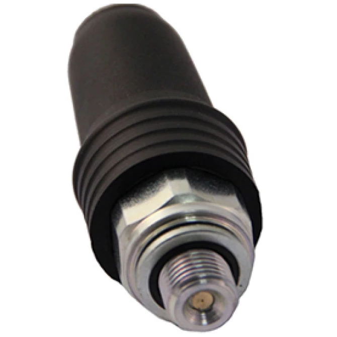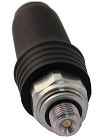 - Wtyk płaski 6,3 × 0,8 z gumową osłoną ochronną (często określany jako konektor płaski) lub